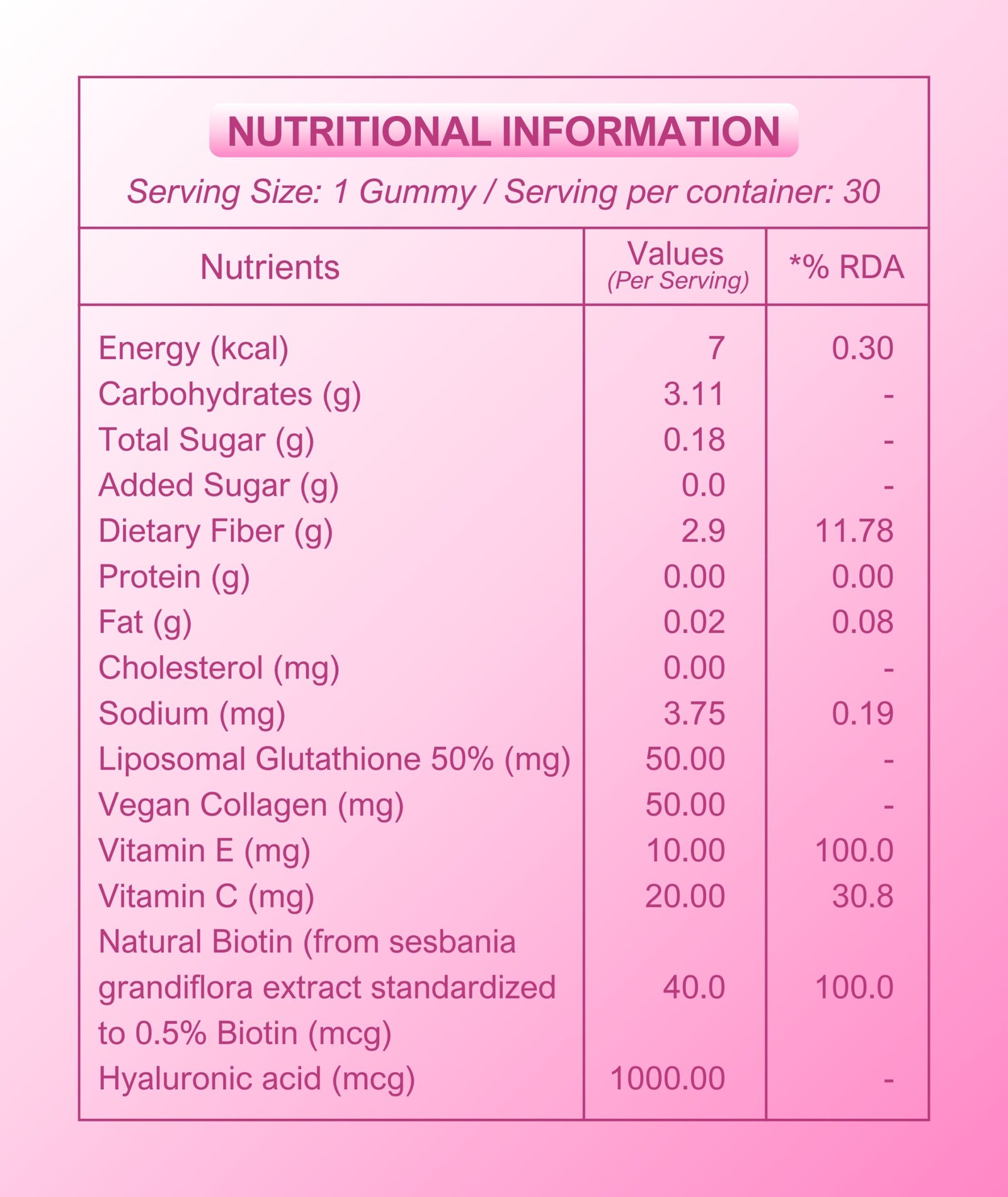 Refreshing strawberry flavour makes daily wellness simple and enjoyable and makes these gummies a perfect addition to any beauty or self-care routine. Feel confident, radiant, and revitalised from the inside out.